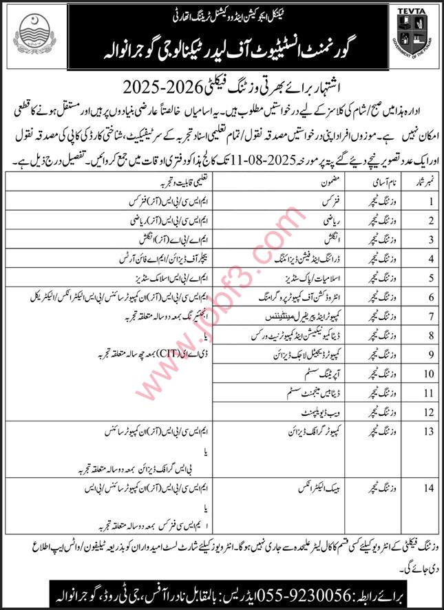 The following job positions are open in the Government Institute of Leather Technology Gujranwala Jobs 2025: