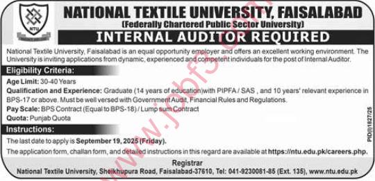 National Textile University in Faisalabad Pakistan Jobs 2025 Full Time