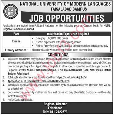The National University of Modern Languages (NUML) is a famous university in Pakistan. It teaches many languages and subjects. NUML has campuses all over the country. Right now, the Lahore Campus is hiring new staff. These are government jobs and are open to all eligible people.