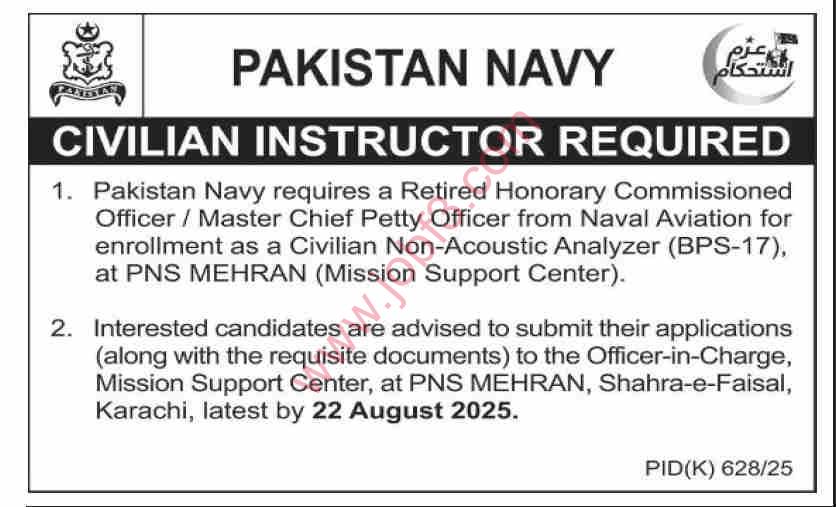Go often to www.joinpaknavy.gov.pk to check for updated government jobs 2025.