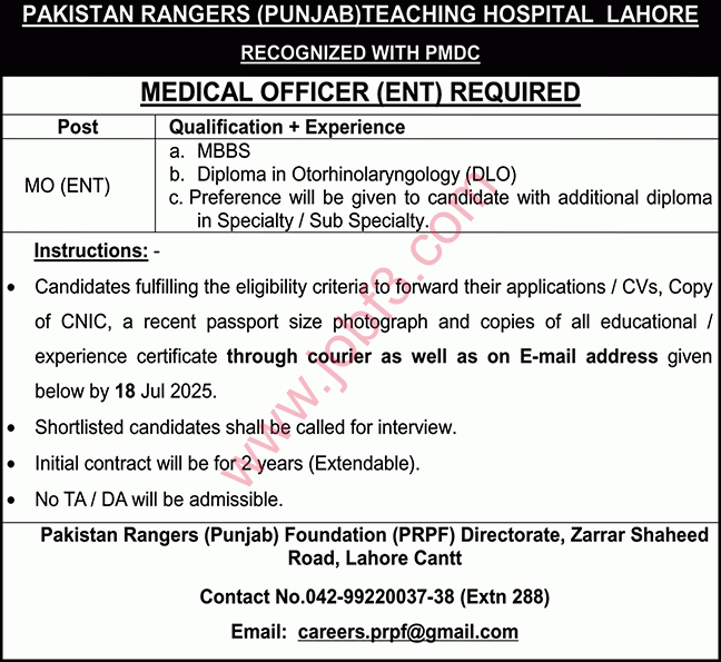 Look at the Pakistan Rangers job ad published in newspapers or on their official website. This shows the latest government jobs 2025 openings.
