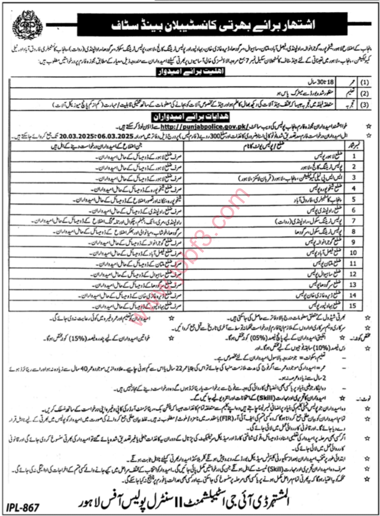 The Punjab Police is one of the most respected forces in Pakistan. It works to keep people safe, stop crime, and maintain peace. The police not only hire officers for security work but also offer special positions like Band Staff Constables who perform at state events, police functions, and official parades.