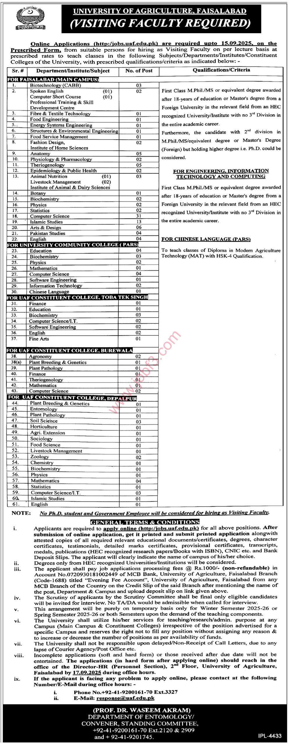 Looking for govt jobs 2025 or new jobs 2025 in education? The University of Agriculture Faisalabad (UAF) is now hiring! If you are looking for government jobs, this could be the perfect chance for you. These are great jobs near me if you live in or around Faisalabad, Karachi, or anywhere in Pakistan.